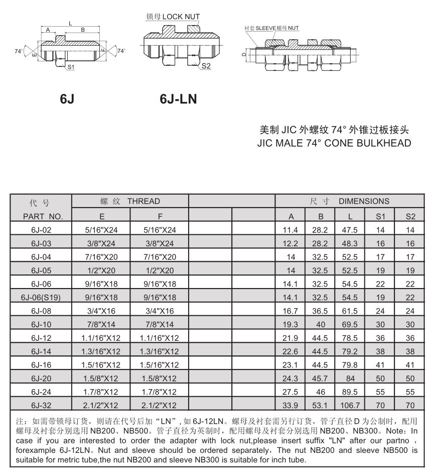 液壓接頭6J直通雙邊美制 JIC 外螺紋 74° 外錐過(guò)板接頭過(guò)渡接頭