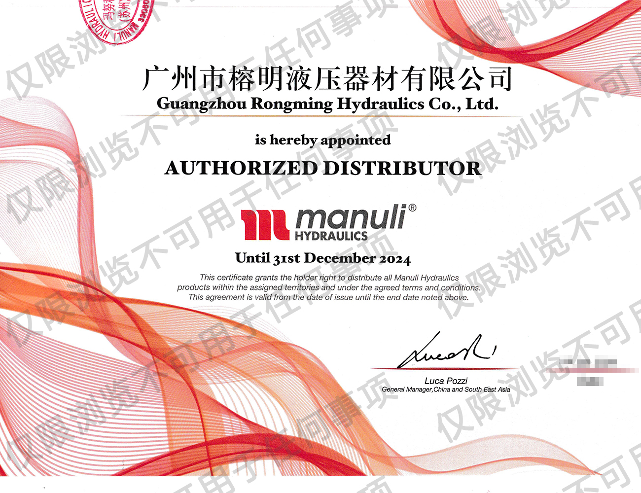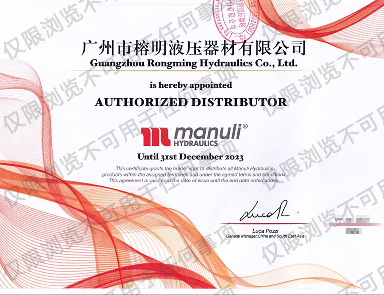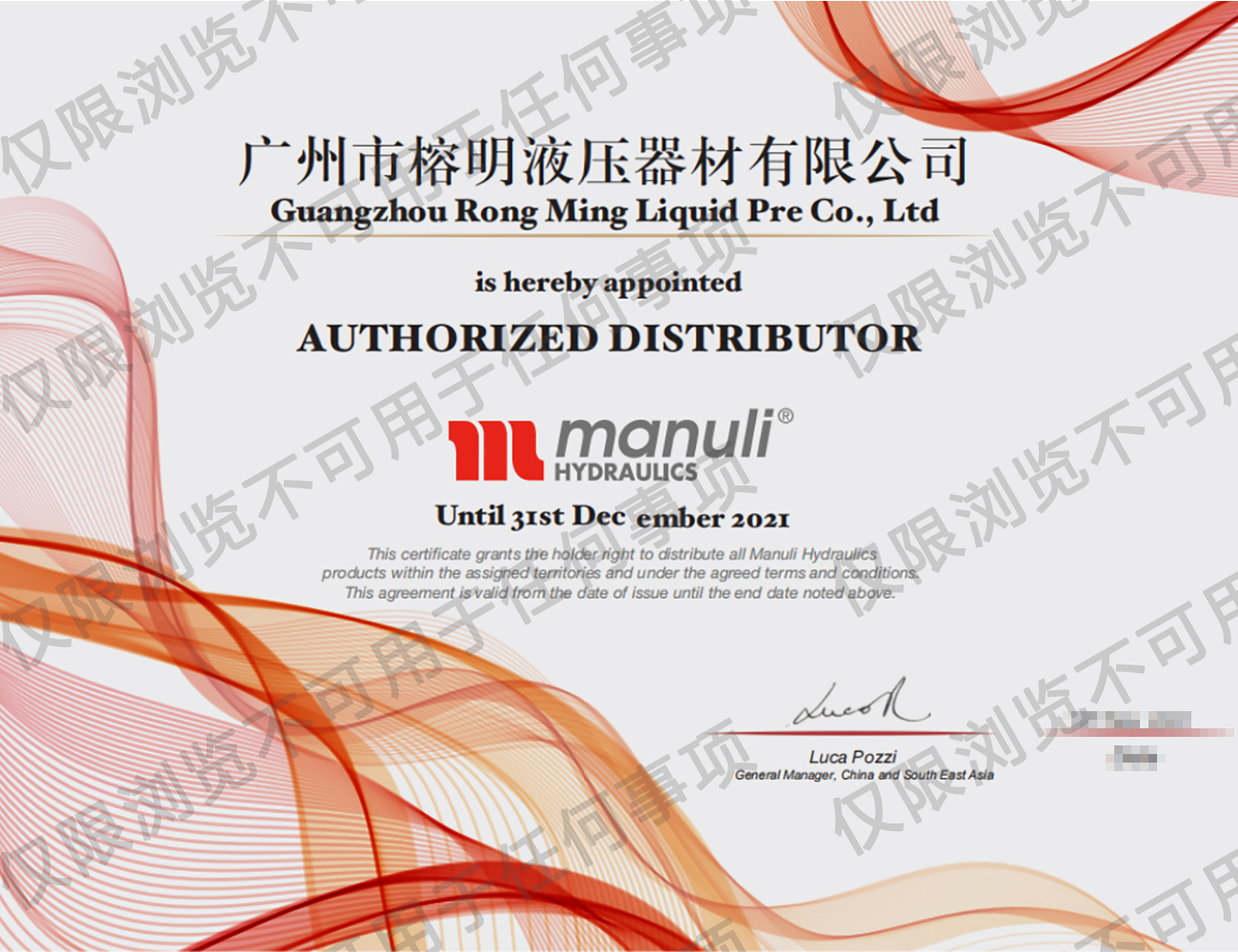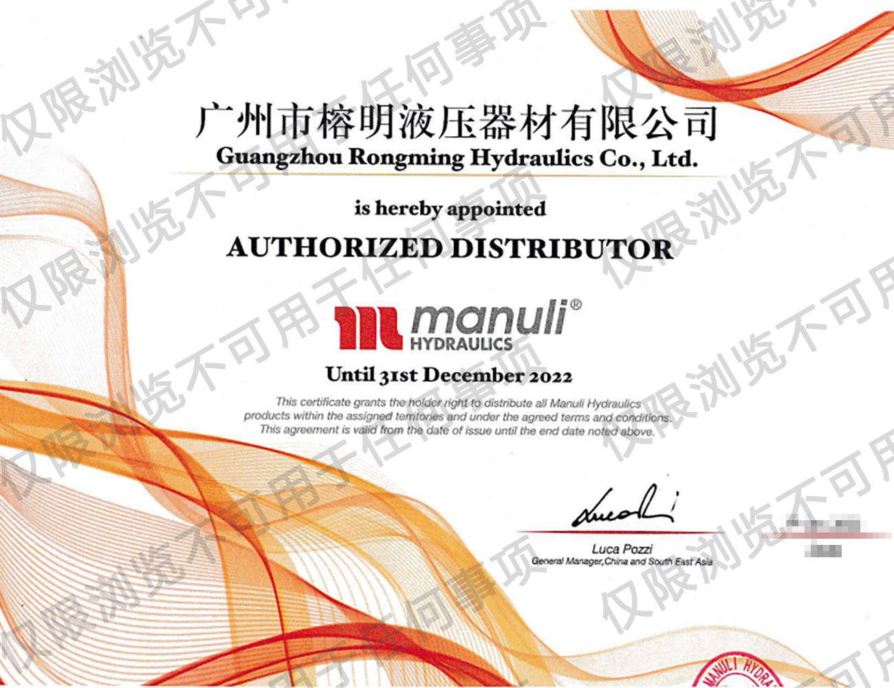 瑪努利公司授權(quán)代理經(jīng)銷商代理證書
