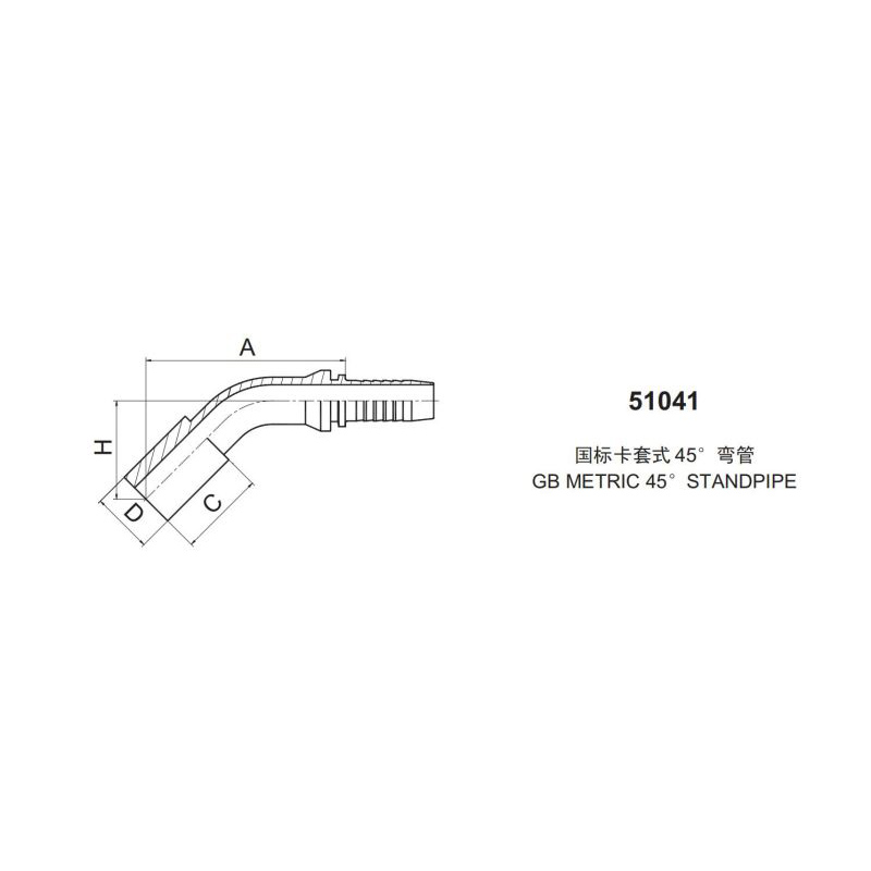 永華標(biāo)準(zhǔn) 扣壓式接頭 51041型號(hào)系列接頭 國(guó)際卡套式 45度彎管 管接頭 GB METRIC 45° STANDPIPE 國(guó)產(chǎn)接頭 液壓管接頭 軟管總成扣壓接頭