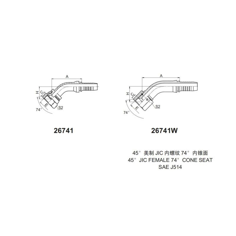 永華標(biāo)準(zhǔn) 扣壓式接頭 26741和26741W 45°美制JIC內(nèi)螺紋74°內(nèi)錐面 45°JIC 總成接頭 膠管壓管接頭 美制錐面密封面 國(guó)產(chǎn)管接頭