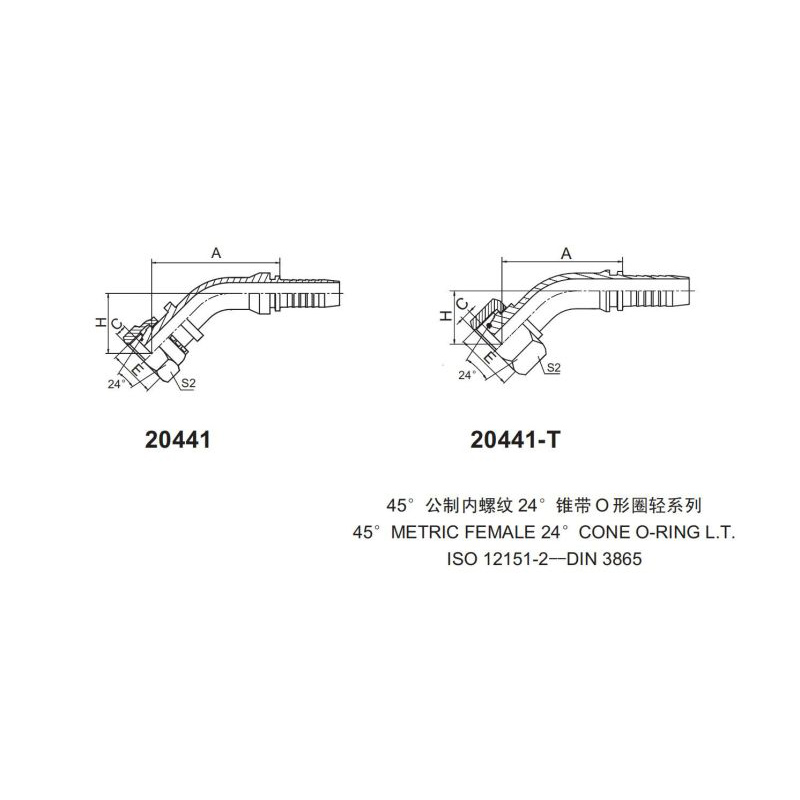 永華接頭 扣壓式接頭 20441和20441-T 45°公制內(nèi)螺紋 24° 錐帶O形圈輕系列 輕型接頭 國產(chǎn)接頭 總成接頭 液壓器材配件 高壓接頭