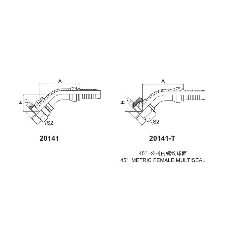 永華標(biāo)準(zhǔn)扣壓式接頭 20141和20141-T 45公制內(nèi)螺紋 球面密封面45 METRIC FEMALE MULTISEAL該接頭常用材質(zhì)有碳鋼彩、碳鋼鍍白鋅