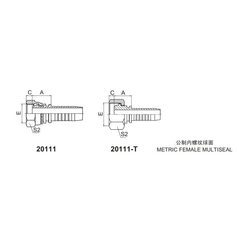 永華標(biāo)準(zhǔn)扣壓式接頭 20111和20111-T 公制內(nèi)螺紋 球面密封面METRIC FEMALE MULTISEAL該接頭常用材質(zhì)有碳鋼彩、碳鋼鍍白鋅、304不
